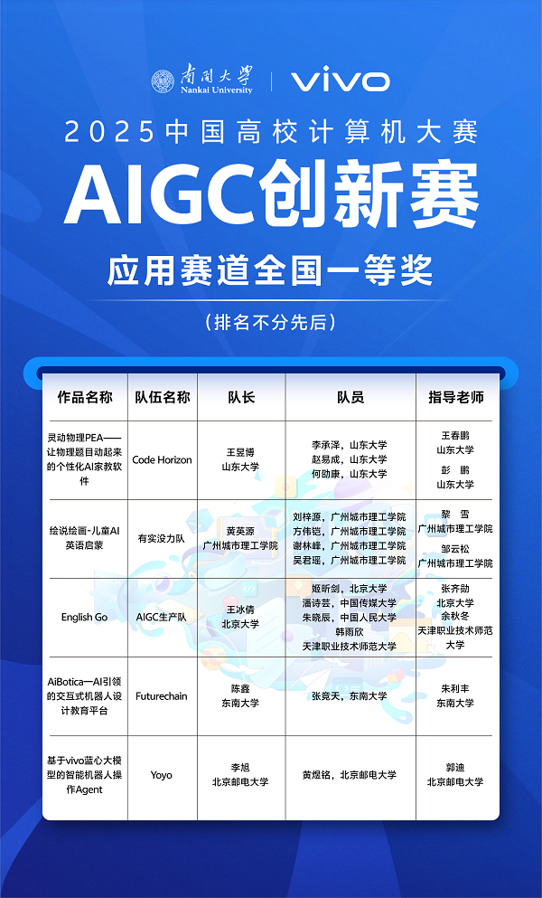 - 诸侯快讯荣获第二届(2025年)“中国高校计算机大赛-AIGC创新赛”全国一等奖及蓝心设计奖 2025-08-29