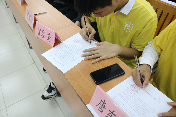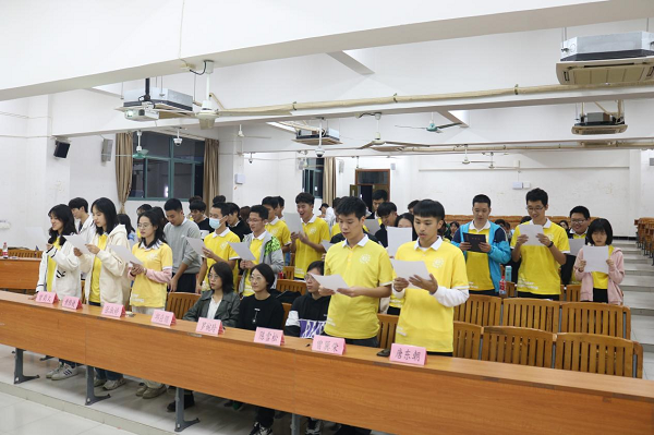 接下来团委副书记罗婉玲和学生会指导老师邱应领宣读聘任名单,并为各部门负责人颁发任命书。全体负责人一起朗读《学生干部“学习与学生工作”告知书》,郑重地签上了自己的名字并做出承诺。