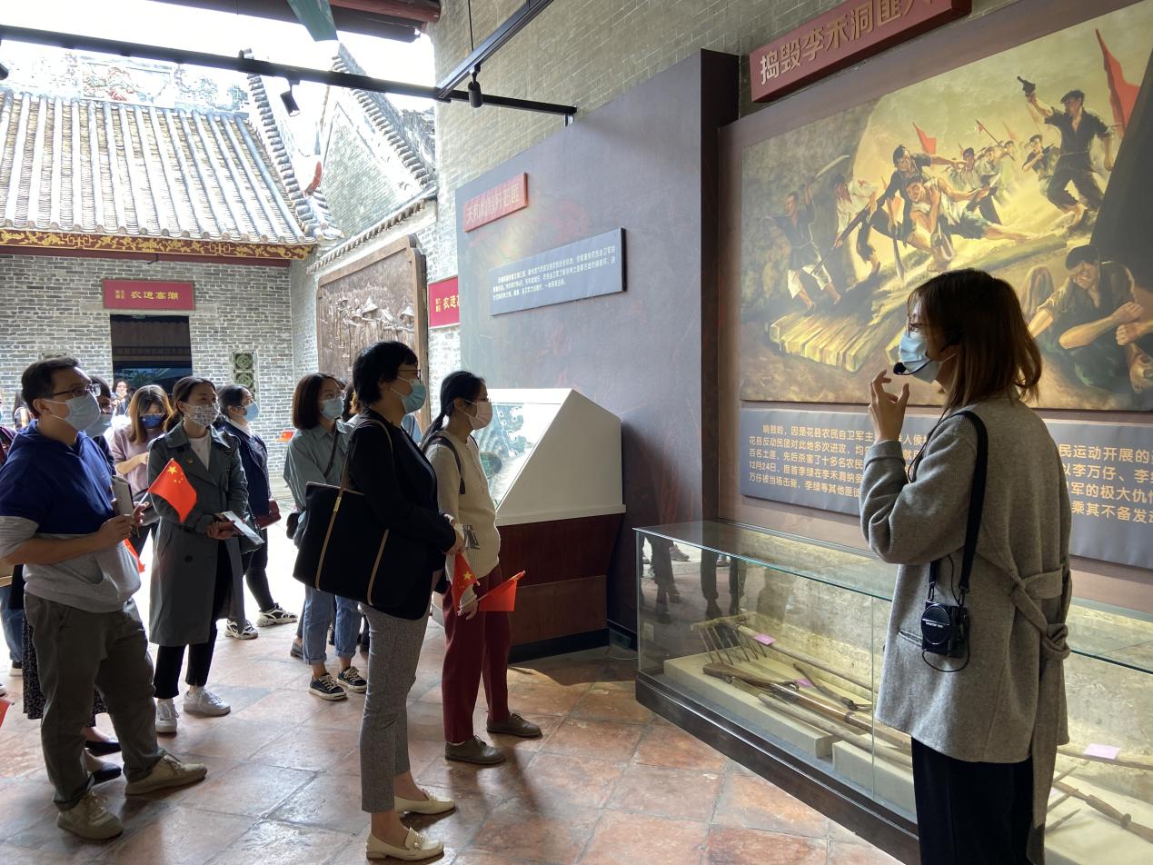 随后,学院党总支组织党员参观花县农民运动陈列馆。在讲解员的引导下,学习“奋起抗争”、“农团降生”、“革命洪流”、“高举义旗”四个主题,大家悉心倾听讲解,重温花县农民运动的感人故事,缅怀花县农民自卫军的丰功伟绩。