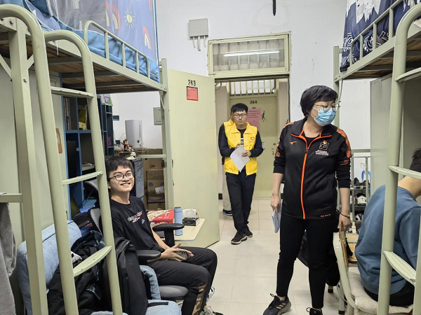 进行宿舍走访并与学生亲切交谈(赖卓虹 摄)