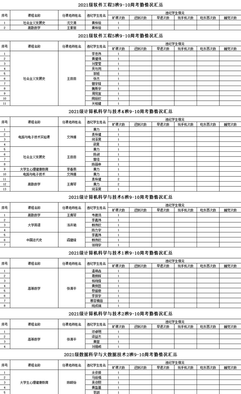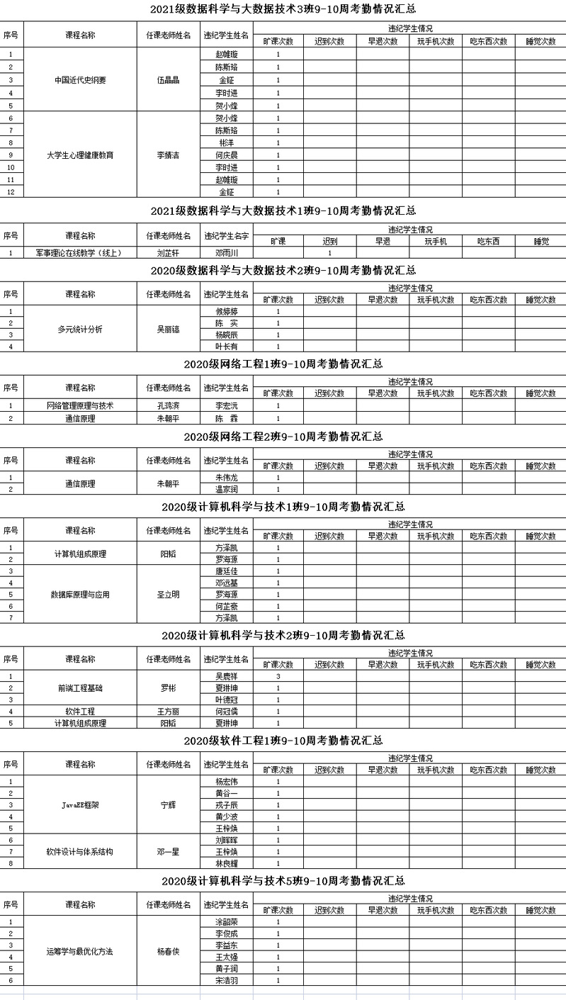 诸侯快讯入口官网/大数据学院2021-2022学年度第二学期9-10周考勤情况通报