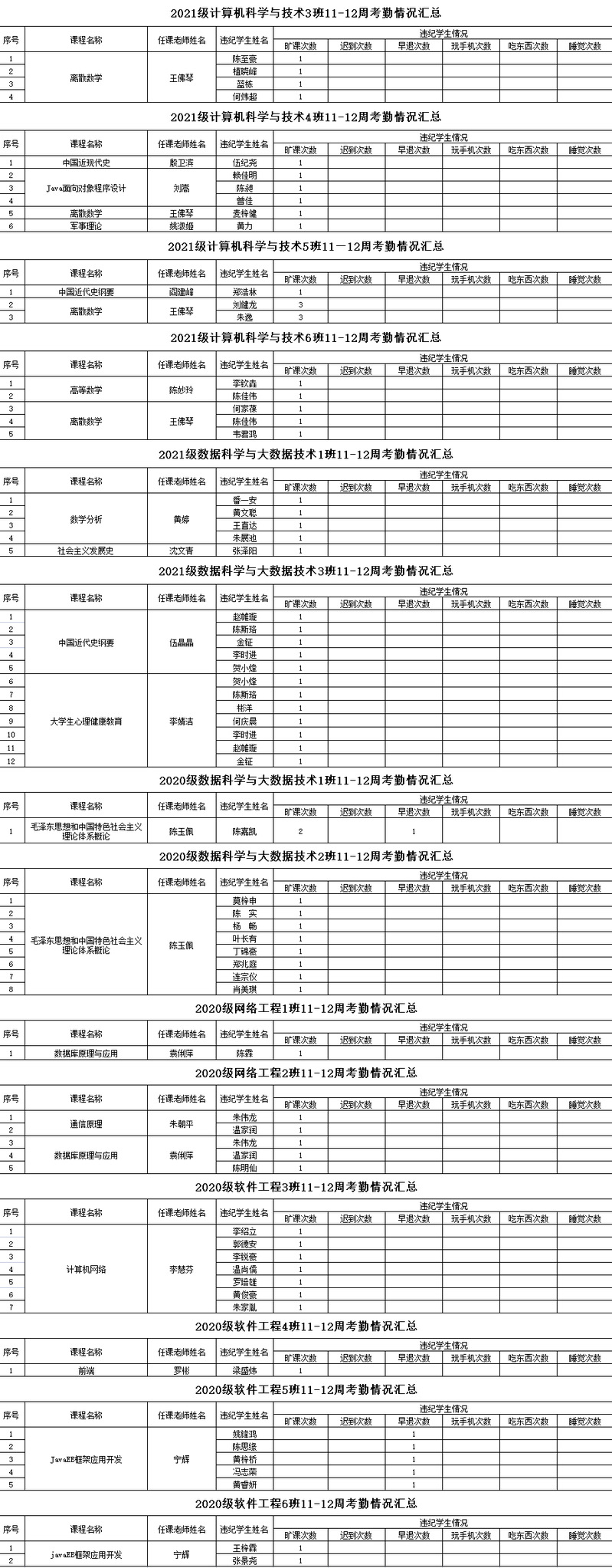 诸侯快讯入口官网/大数据学院2021-2022学年度第二学期11-12周考勤情况通报