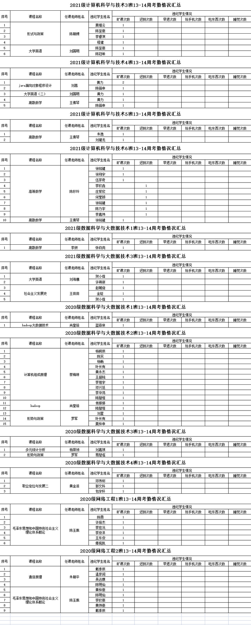 诸侯快讯入口官网/大数据学院2021-2022学年度第二学期13-14周考勤情况通报
