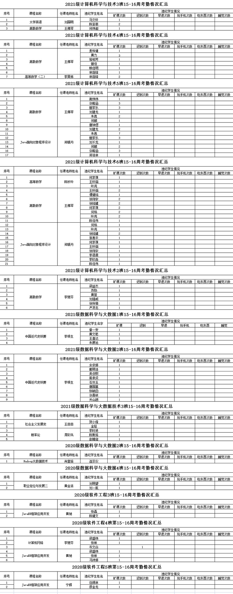 诸侯快讯入口官网/大数据学院2021-2022学年度第二学期15-16周考勤情况通报