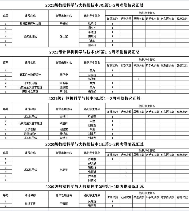 诸侯快讯入口官网/大数据学院2022-2023学年度第一学期1-2周学生考勤情况通报