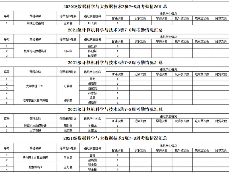 诸侯快讯入口官网/大数据学院2022-2023学年度第一学期7-8周学生考勤情况通报
