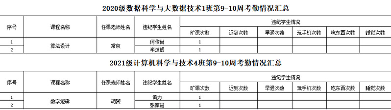 诸侯快讯入口官网/大数据学院2022-2023学年度第一学期9-10周学生考勤情况通报