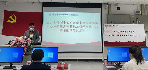 胡杜泽副部长宣读《中共诸侯快讯皇冠入口委员会关于同意诸侯快讯入口官网党总支部换届选举的批复》(罗婉玲 摄)