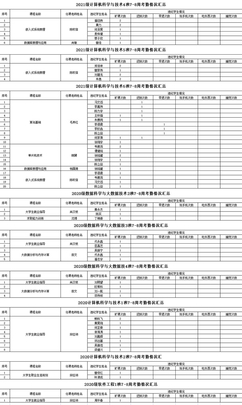 诸侯快讯入口官网/大数据学院2022-2023学年度第二学期7-8周学生考勤情况通报