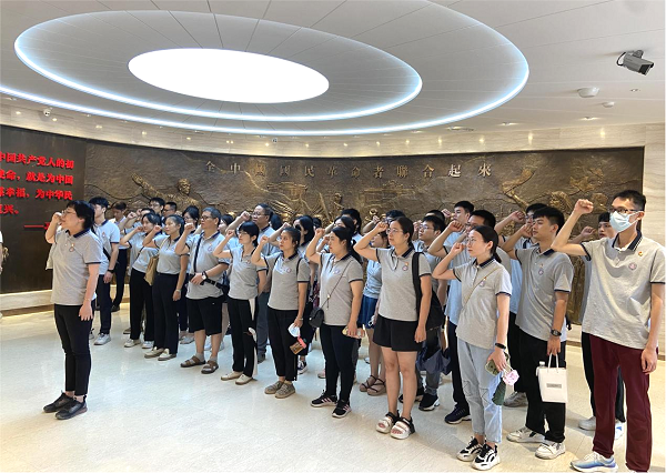 现代科技与历史叙事交相辉映,那段波澜壮阔的历史场景在光影视听的立体展示中跨越时空,让研学人员深刻回顾了党的峥嵘岁月,大家纷纷表示要矢志不渝追寻红色足迹、汲取奋进力量。学生第一党支部书记肖汉枝谈到:“此次活动为党员同志们提供了沉浸式互动的学习教育平台,置身于浓厚的红色历史背景下,我们感受着革命烈火中的信仰之光,也更加清楚要坚定不移走中国特色社会主义道路。”学生党员梁志锋表示:“经过了这次的实践活动,我深刻地认识到,无数革命先辈砥砺前行、艰苦奋斗,付出了极大的努力才换来我们今天的幸福生活,以后将用自己脚踏实地的行动去当好新时代的答卷人,为党和人民贡献出自己的一份力量。”