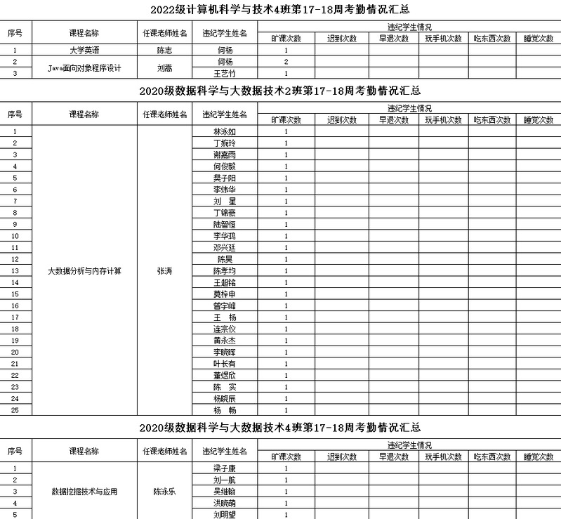诸侯快讯入口官网/大数据学院2022-2023学年度第二学期17-18周学生考勤情况通报