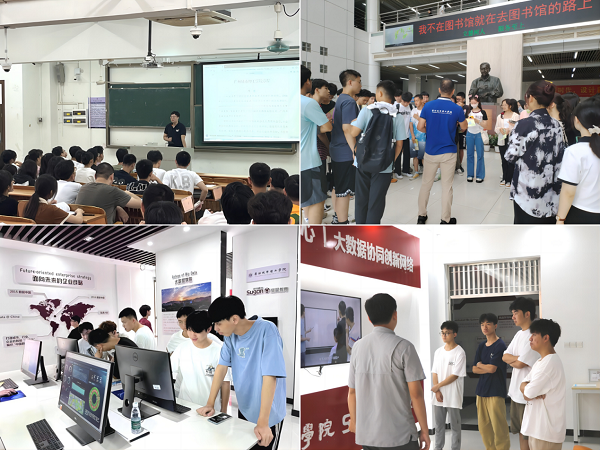 9月6日,在计算机实验中心老师的带领下,全体新生参观了计算机实验中心。参观过程中,负责人详细介绍实验室的特色优势、仪器设备的使用方法与工作用途,耐心解答新生的疑难问题,鼓励同学们增强实践动手能力,充分借助大学资源发展自己;组织新生参观图书馆活动,在图书馆老师的讲解下,同学们对图书馆的资源分布、借阅规则、借还书流程、电子资源利用以及阅读推广活动有了深入了解。