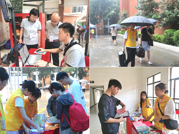 在2023级新生到来前,学院于8月31日召开新生班主任、辅导员、教务员工作会议,精心组织安排,周密制定工作方案,扎实做好各项准备工作,确保整个迎新工作顺利进行。9月2日至3日,正值台风天气,院长邓春晖、书记罗军、副院长蔡沂亲临迎新现场指挥,现场井然有序、热情不减,辅导员老师和志愿者们的身影随处可见,整个过程细致、有序、温馨。