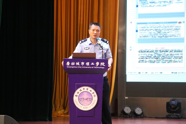 会议最后,学院特邀花都区秀全街道派出所李政警官为新生开展防诈骗专题讲座。讲座中,李政以诙谐幽默的言语,结合防诈资料和案例展示,详细讲述各种常见的电信诈骗类型,强化新生的反诈防骗意识,并提醒学生多关注防诈骗宣传,提高自我防范能力。