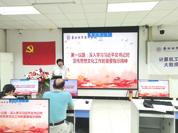 会上,罗军以“第一议题”形式带领全院教职工深入学习习近平总书记对宣传思想文化工作的重要指示精神。她表示,习近平总书记指出宣传思想文化工作事关党的前途命运,事关国家长治久安,事关民族凝聚力和向心力,是一项极端重要的工作。她强调,习近平文化思想首次提出,明确了新时代文化建设路线图和任务书,为做好新时代新征程宣传思想文化工作、担负起新的文化使命提供了强大思想武器和科学行动指南。文化传承是时代赋予高等学校的重要使命,作为传播和传承先进思想文化的重要场所,作为培养社会主义建设者和接班人的主要阵地,宣传思想文化工作面临新形势新任务,学院要担负起宣传思想文化工作的重大政治责任,紧紧围绕学习贯彻习近平文化思想,围绕贯彻党的二十大关于文化建设的战略部署,切实增强做好新时代新征程宣传思想文化工作的责任感使命感,推动各项工作落地见效。随后,全院教职工一同观看学习《新闻联播》关于全国宣传思想文化工作会议的报道。