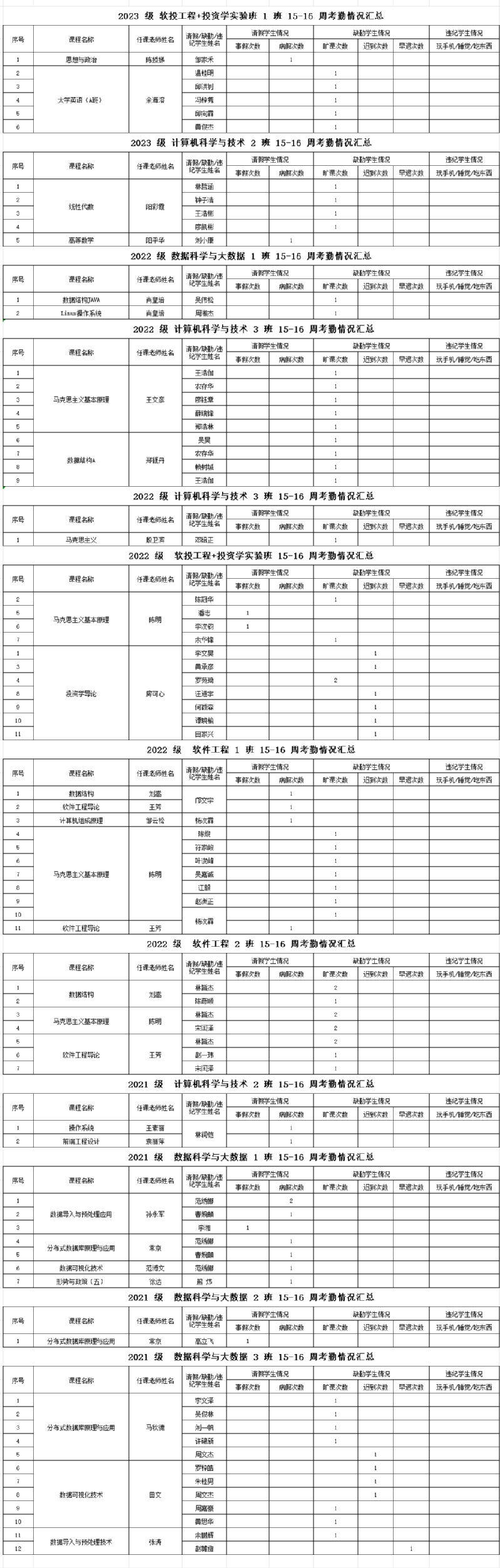 诸侯快讯入口官网/大数据学院2023-2024学年第一学期15-16周学生考勤情况通报