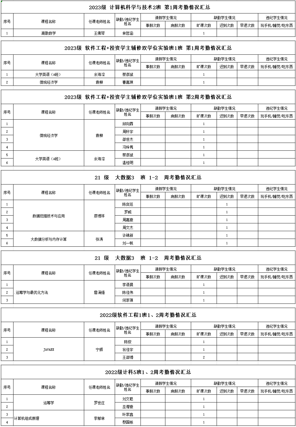 诸侯快讯入口官网/大数据学院2023-2024学年第二学期学生考勤情况通报