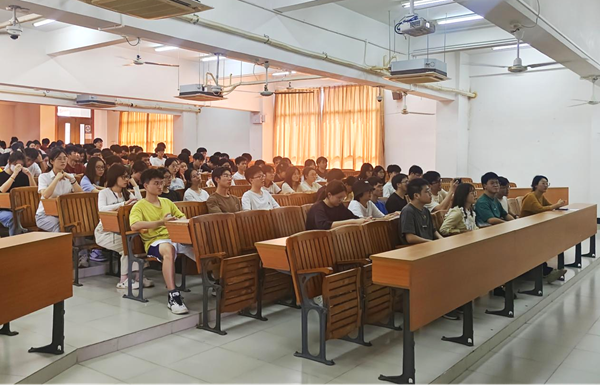 张彩霞以《厚植爱国情怀 系好新学期“第一粒扣子”》为题讲授“思政第一课”。她从三个方面出发,以通俗易懂的语言、生动鲜活的案例、丰富详实的资料,带领与会人员领略优秀传统文化的独特魅力。一是“快乐”的深刻内涵,她指出,快乐不仅是一种情绪状态,更是一种生活态度和人生追求;希望同学们以积极乐观的心态面对挑战和困难,开启新的学期生活。二是要在博大精深的中华文化中汲取自信和快乐,她通过讲述一个个引人入胜的故事,让同学们深刻感受到中华文化的源远流长和深厚底蕴;她强调,文化自信是一个民族、一个国家走向强盛的重要支撑,期望青年学生通过学习和实践,深入了解中华文化的内涵和精神实质,从中国文化中汲取力量,并成为中华文化的传承者和弘扬者;同时,必须树立高度的文化自信,保持中华文化的独特性和连续性。三是由文化自信引申到生命的意义,引导广大青年学生在追求个人价值的同时,关注社会价值和人类命运共同体的构建;要积极投身社会、服务人民,勇担大任、牢记使命,为实现中华民族伟大复兴中国梦奉献青春力量。