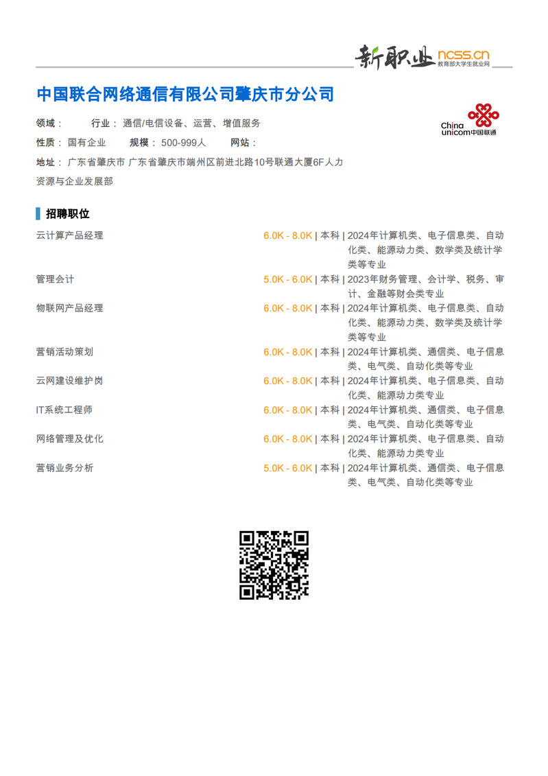 招聘信息 | 中国联合网络通信有限公司肇庆市分公司