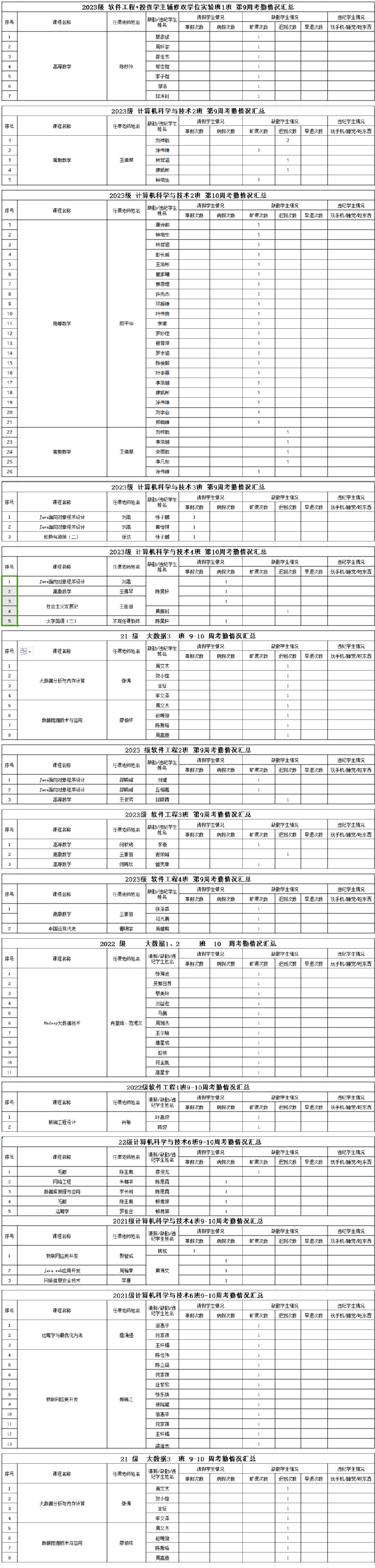 诸侯快讯入口官网/大数据学院2023-2024学年度第二学期9-10周学生考勤情况通报