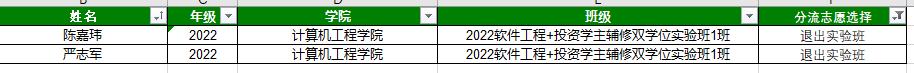 根据《诸侯快讯皇冠入口主辅修双学位实验班管理办法(2023年修订)》和《诸侯快讯入口官网/国际商学院“软件工程-投资学”主辅修双学位实验班管理实施细则(试行)》的相关规定,现对2名学生将于 2023-2024学年第2学期结束后退出实验班,并从2024-2025学年第1学期进入软件工程专业普通班就读的情况进行公示。