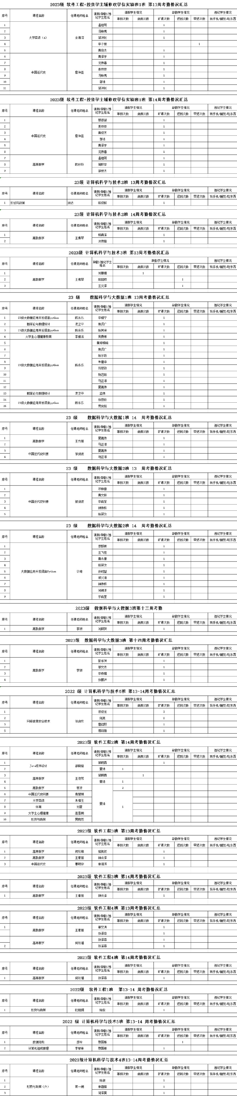 诸侯快讯入口官网/大数据学院2023-2024学年度第二学期13-14周学生考勤情况通报