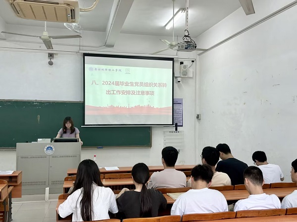 此外,章轶凡还对2024届毕业生党员组织关系转出工作进行了详细安排,并强调了相关注意事项。要求毕业生党员在离校前,要认真履行党员义务,做好组织关系转接工作,确保党员身份的延续性和纯洁性。并在毕业之际对他们寄予殷切希望,在新的工作学习岗位上,继续发扬党的优良传统,发挥党员的先锋模范作用,为母校添光,为党旗添彩!