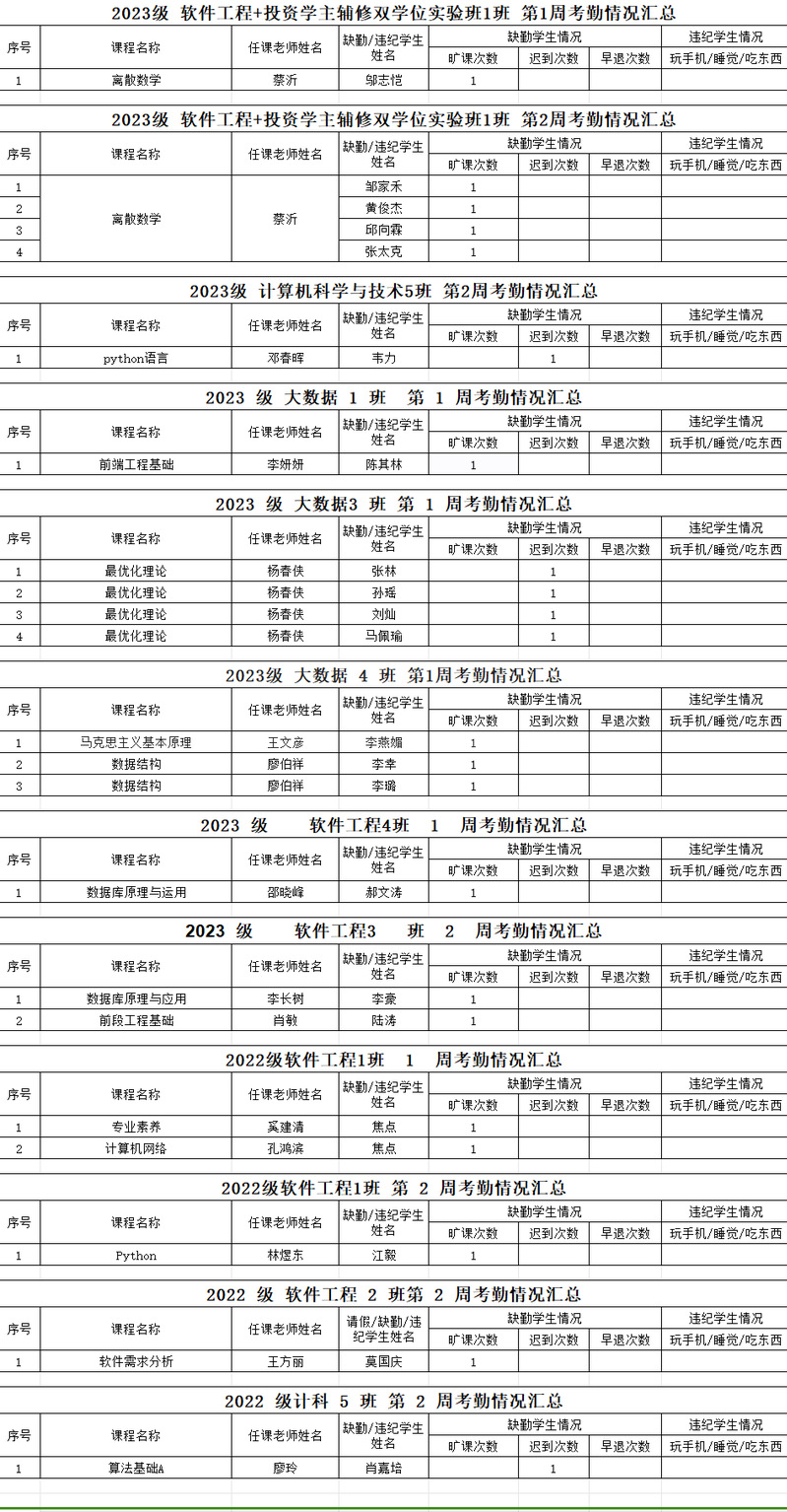 诸侯快讯入口官网/大数据学院2024-2025学年度第一学期1-2周学生考勤情况通报