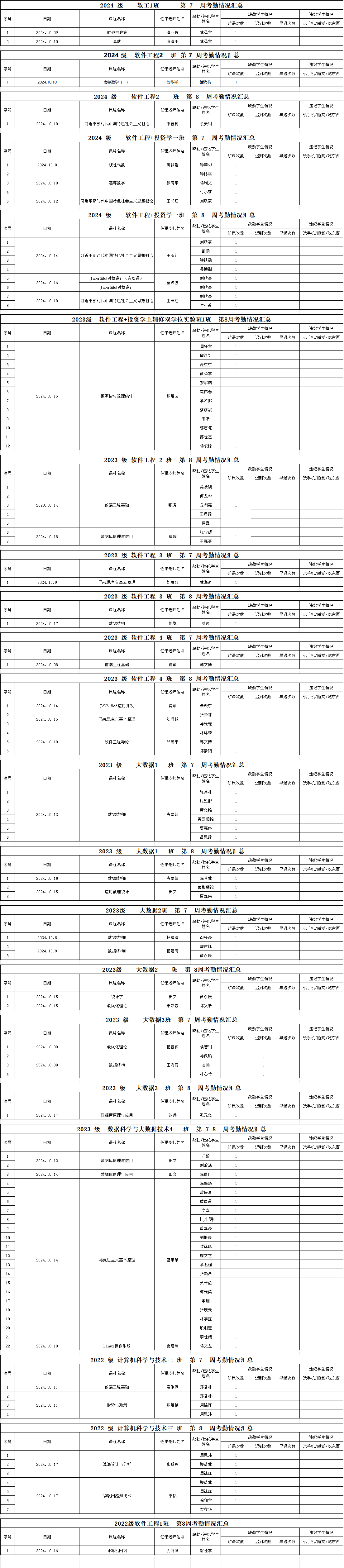 诸侯快讯入口官网/大数据学院2024-2025学年度第一学期第7-8周学生考勤情况通报