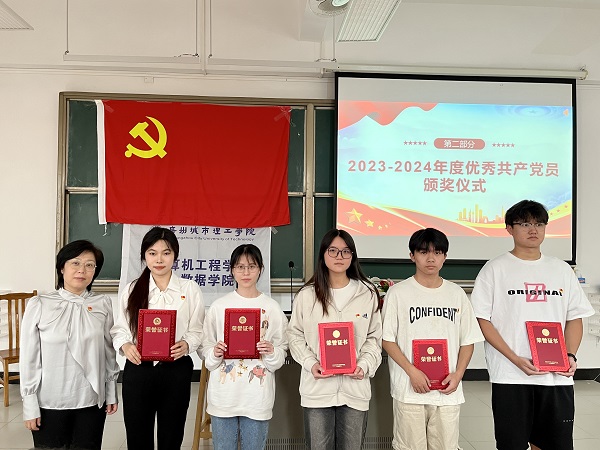 随后进行2023-2024学年度优秀学生党员颁奖仪式。张彩霞对上一年来在学业、工作和社会实践中表现突出的五名学生党员进行颁奖。这些优秀学生党员以自己的实际行动诠释了共产党员的先进性和纯洁性,他们的先进事迹充分展示了新时代大学生党员的良好形象,对于推动学院党建工作具有重要意义。