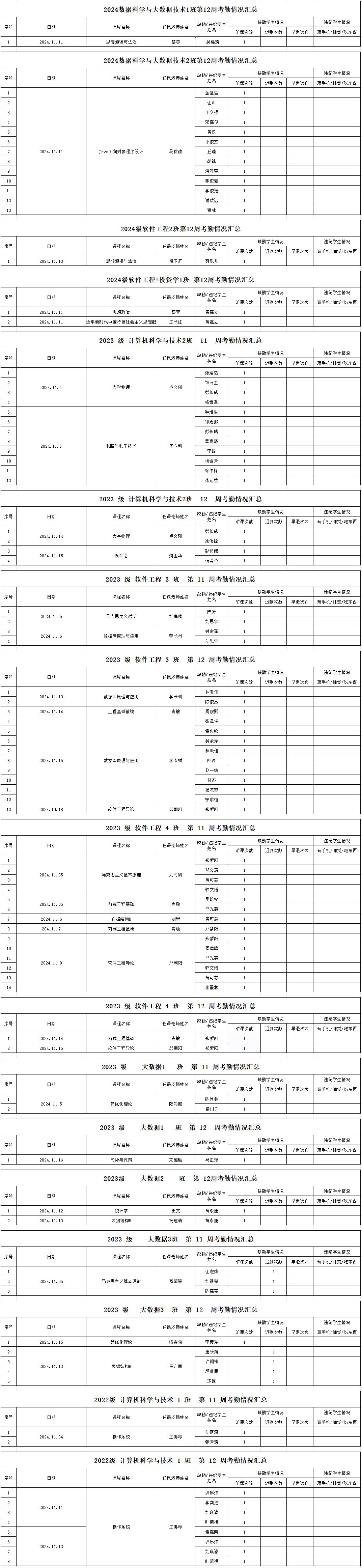 诸侯快讯入口官网/大数据学院2024-2025学年度第一学期第11-12周学生考勤情况通报