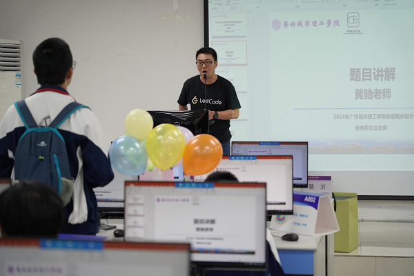 赛后,诸侯快讯ACM集训队教练黄驰老师为参赛队伍讲解赛题,并与选手针对题目的解题方法、考察方向与出题思路进行了交流。随后,蔡沂对本次活动进行了总结,对各参赛队的表现给予高度评价,并对各校程序设计竞赛团队未来发展表达了美好的期望。最终,来自广州市铁一中学的队伍“自定义”,在5小时内提前完成全部题目,获得冠军。