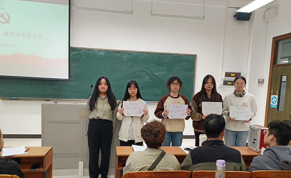 12月3日下午,学院党支部于A1-309举行本次“青年领航”微党课表彰大会,对本季微党课表现优异的沈桂霖、王楠、陈杨柳、廖钰舒、邓玉坚五位党员同志进行了表彰。他们结合自身的学习体会和实践经验,以生动的语言、鲜活的事例,为同学们带来了精彩纷呈的微党课。
