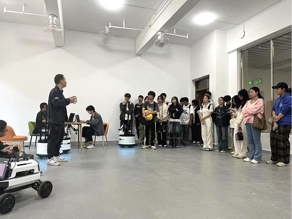 活动在派宝机器人工程师罗兆恒的演讲中拉开序幕。罗兆恒详细剖析了机器人技术在未来社会中的广泛应用与深远影响,引发了现场师生的共鸣与兴趣。随后,在学院工作室负责老师刘勇的组织下,学生们分组参观了机器人工作室,体验了机器人编程、传感器应用及机器视觉等前沿技术的实际操作,领略到科技创新的魅力。此次参观,不仅加深了学生们对机器人技术的理解,而且激发出他们投身科技创新的热情与兴趣。