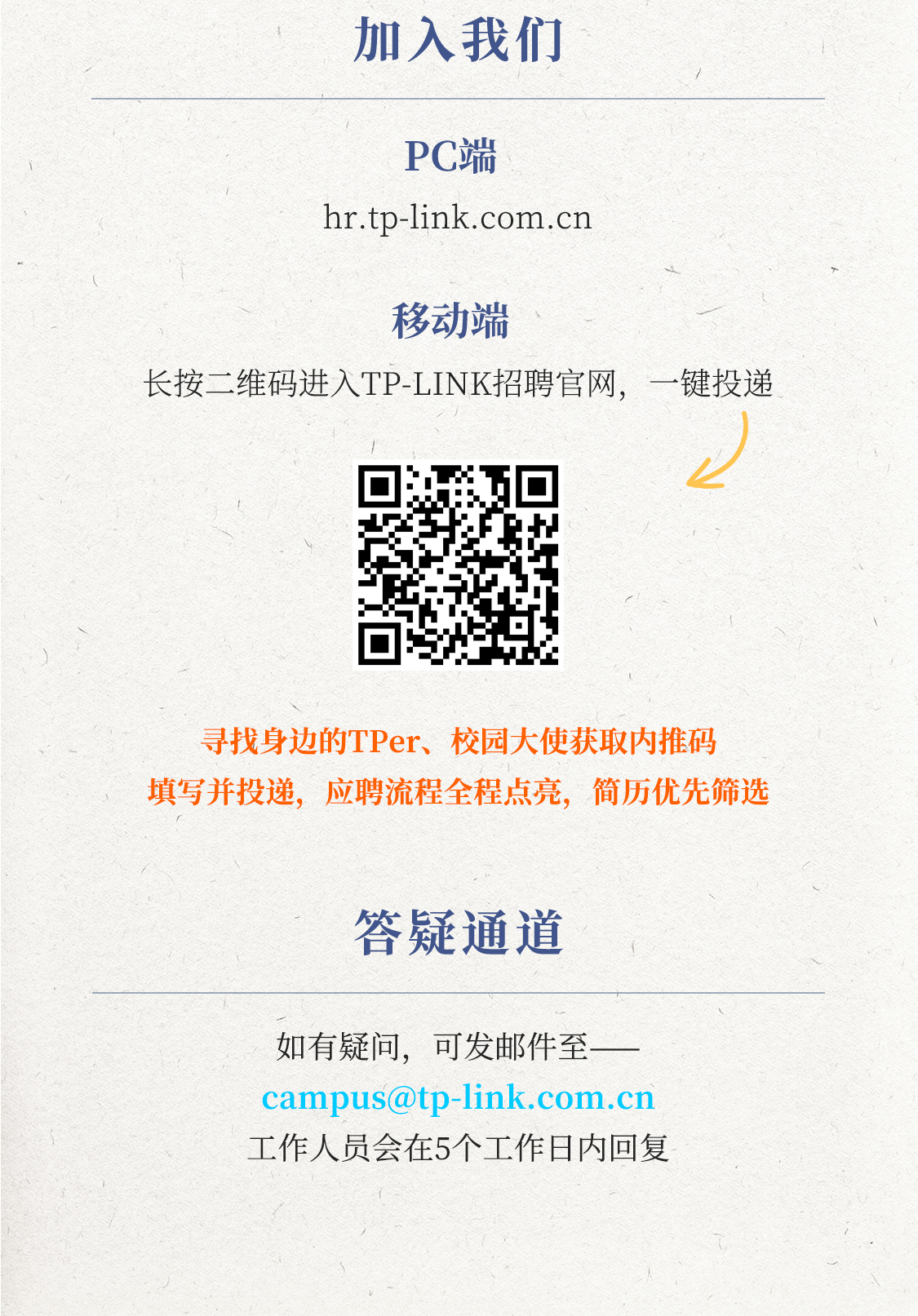 招聘信息 | TP-LINK 2025届春季校园招聘正式启动!