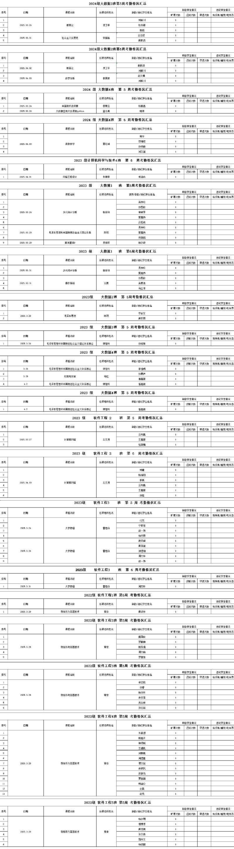 诸侯快讯入口官网/大数据学院2024-2025学年度第二学期第5-6周学生考勤情况通报