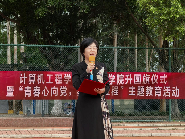 张彩霞以“三把成长钥匙”展开讲话。她强调,青年应秉持“打破桎梏的勇气”,在实验室调试程序、赛场挑战极限中突破自我;以“感恩生命的馈赠”回馈时代,如雷锋月活动中学生用编程为特殊儿童编织温暖,用行动传递善意;以“探索未知的执着”追求卓越,借鉴黄令仪院士研制“龙芯”的攻坚精神,在专业领域勇于创新。张彩霞提到,学院学子在“挑战杯”专项赛、中国国际大学生创新大赛屡获佳绩,展现了将未知挑战转化为突破动力的担当。她勉励学生:“青春当以锐气突破认知,以探索攀登高峰,在时代征程中书写无愧于心的答卷。”