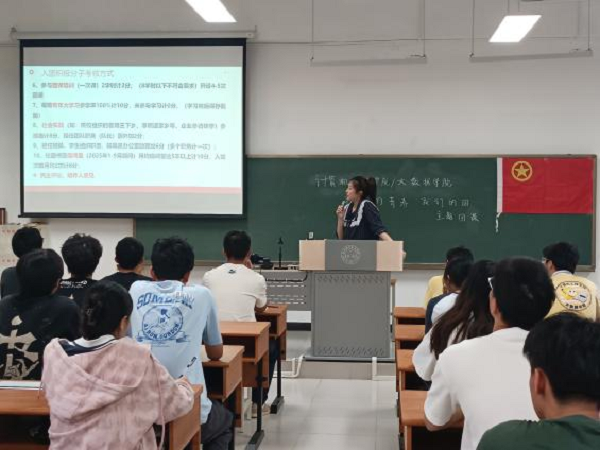 本网讯(记者 樊一眉 潘虹丹) 为深化青年学生对共青团历史使命的认知,增强团情团史教育,4月15日下午,学院于A1-405教室举办“我们的青春,我们的团”主题团课活动。学院团委副书记樊一眉担任主讲,62名入团积极分子参与学习。