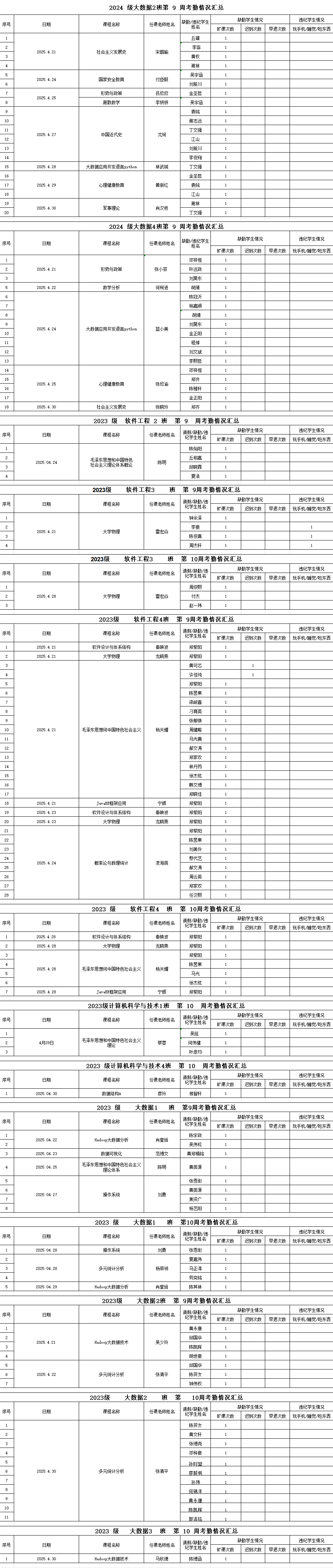 诸侯快讯入口官网/大数据学院2024-2025学年度第二学期第9-10周学生考勤情况通报