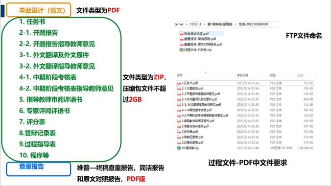 2)电子版资料请按照要求整理后发给毕业设计助理,由毕业设计助理收集、整理后以导师组为单位上传至FTP,时间截止为2025年6月13日。