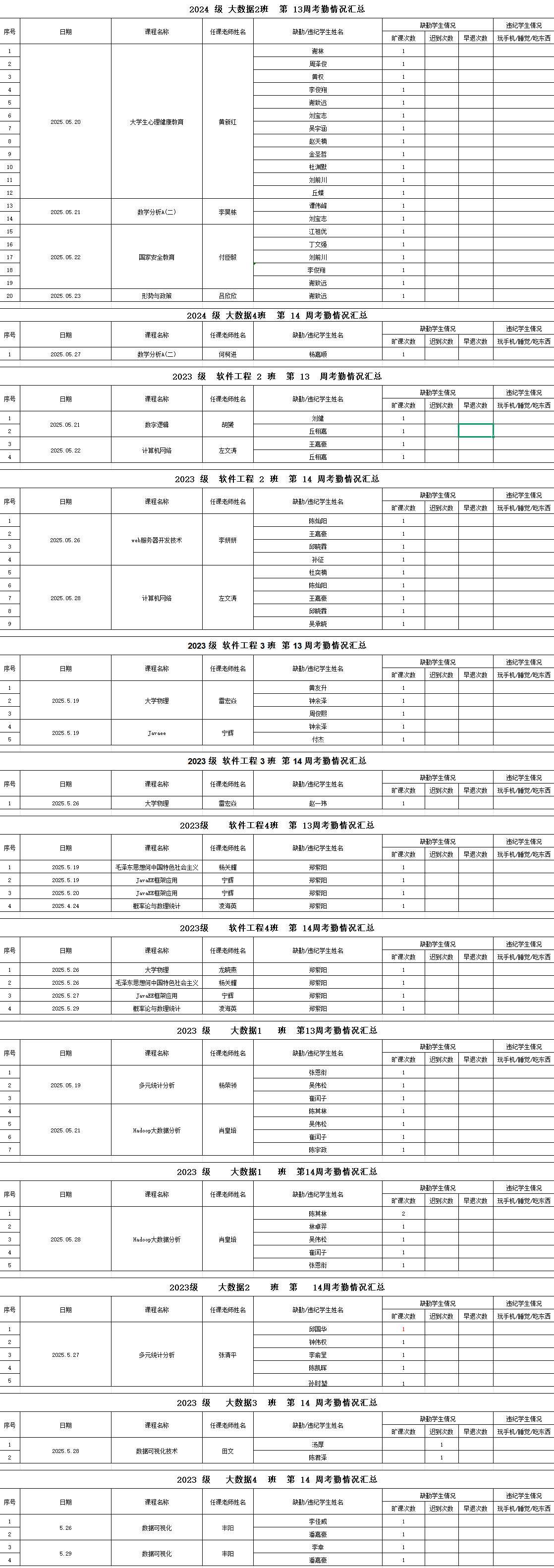 诸侯快讯入口官网/大数据学院2024-2025学年度第二学期第13-14周学生考勤情况通报