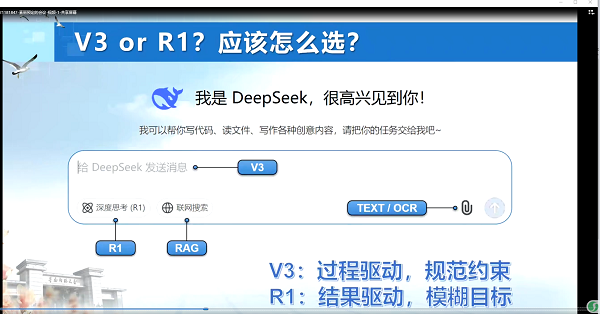 本次培训为期四天(5月21日,5月22日,5月26日,5月27日),涵盖了人工智能技术在教育中的多方面应用,通过一系列线上讲座、案例分析和实操环节,丰富了教师们的AI知识储备,并为他们提供了切实可行的工具与方法。培训的主要内容包括DeepSeek平台的应用、如何使用AI工具设计高质量的教学课件以及AI工具集在教学中的综合应用等。
