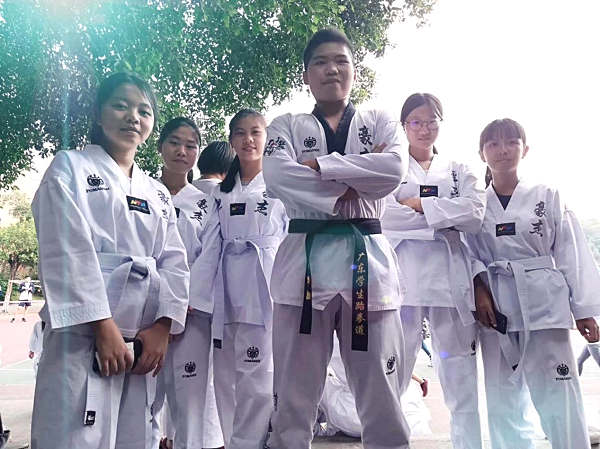 文武兼修,互济明道。学业之外,杨泽鹏将热情倾注于跆拳道协会。作为技术部部长,他的主要职责是组织日常训练和择优考核。他不仅精修个人技能,而且更注重团队培养。师弟师妹们对杨泽鹏的印象非常深刻:“在期末考核和演出前,杨泽鹏师兄会组织我们练习考试内容,他的指导通俗易懂而且很有耐心,能帮助我们把握最核心的技术点。”杨泽鹏曾在广东省大学生跆拳道锦标赛中荣获第三名,为协会的师弟师妹们树立了榜样,师弟师妹们也在他的带领下不断突破,在多项跆拳道比赛中获得佳绩。