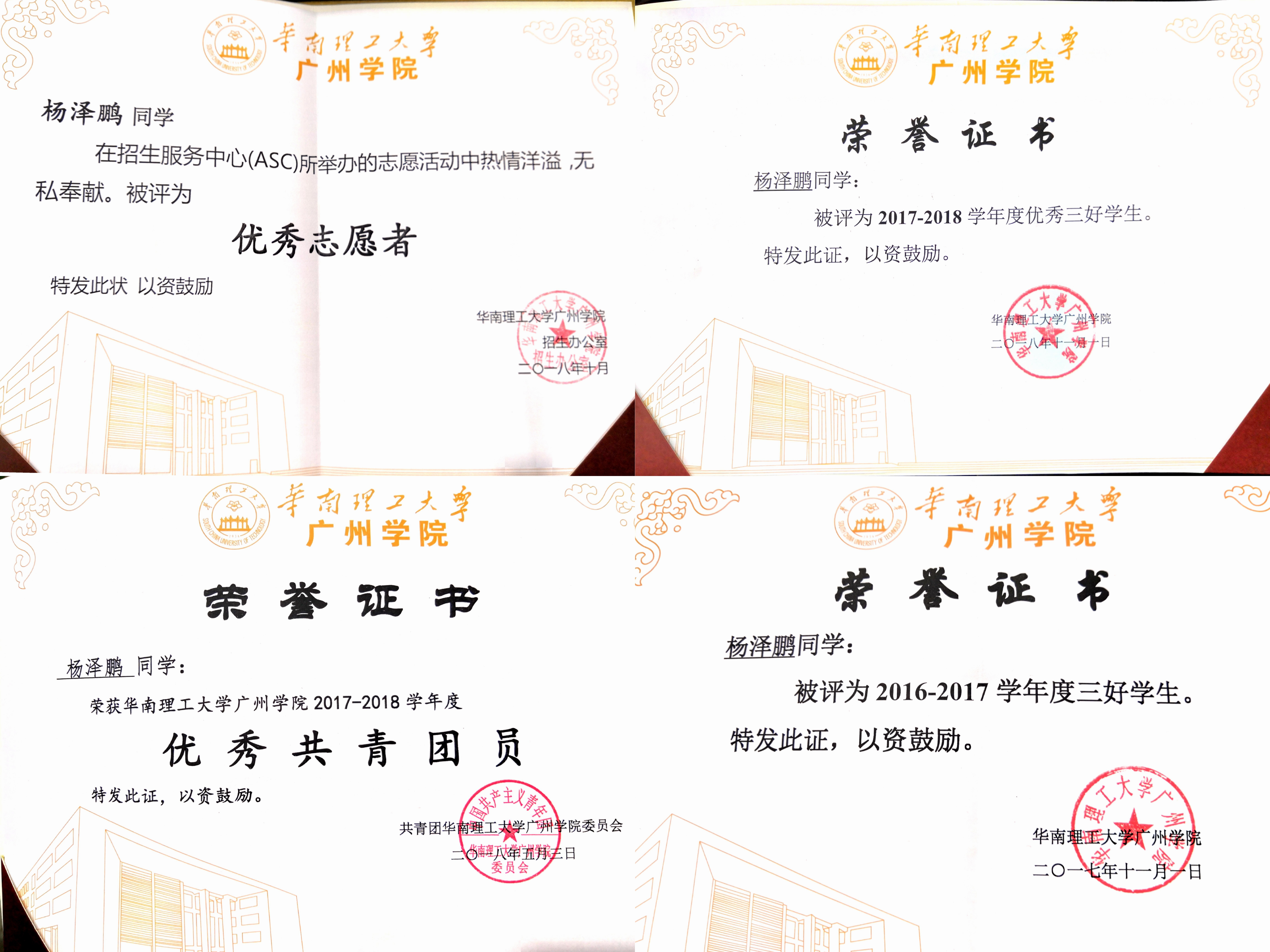 杨泽鹏获得的部分荣誉(杨泽鹏 提供)
