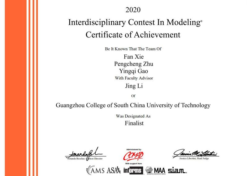 图3:2020美国大学生数学建模竞赛特等提名奖