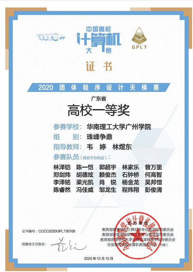 图11:2020年团体程序设计天梯赛广东省高校一等奖
